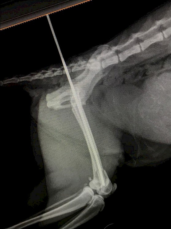 Fractures of the femur are some of the most common fractures seen in cats usually the result of major trauma. Generally, femoral fractures cause acute, non-weight bearing lameness of the affected hind leg. These fractures can occur in an immature bone or in a mature one. They can be open or closed fractures, and can be simple or multiple. For example, a 3 years old female cat was brought in the clinic due to limping in right hind leg, in appetence, lethargy, in pain upon palpation. X-ray was done and revealed fractures in the femur bone. Treatment will vary depending on the severity of the trauma. Treatment was done by doing bone pinning under general anesthesia. Antibiotic and pain killer medicines were given for a week. Try to prevent your cat from walking or moving too much. After surgical repair of the fracture, the cat will be kept restricted from activity for several weeks and the skin incision will be monitored while healing